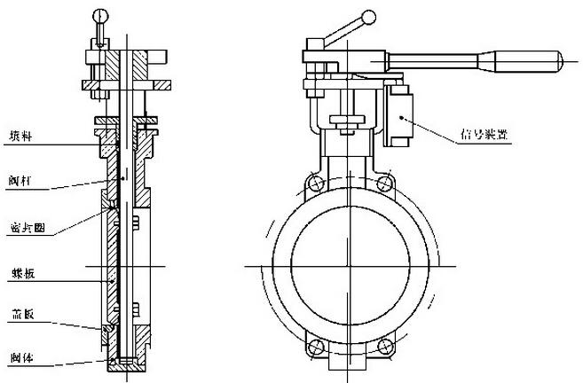蝶阀根据连接形式的不同能分成法兰式蝶阀和对夹式蝶阀;按照结构形式可以分为中线蝶阀和偏心蝶阀。蝶阀的结构非常的简单,有阀体、阀杆、阀座、蝶板和传动机构组成,常见的传动方式有手柄、涡轮、气动、电动。下面我们来针对蝶阀的结构图来对蝶阀做一个解析。