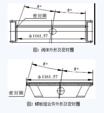 三偏心金属硬密封蝶阀的密封面是斜锥面,阀体密封圈(图1)与蝶板组合件密封圈(图2)的接触为面接触,其工作原理是靠驱动装置扭力直接带动蝶板组合件,使蝶板组合件密封圈与阀体密封圈充分接触后产生弹性变形而密封。三偏心金属硬密封蝶阀作为一种高性能阀门,具有耐腐蚀性好、密封可靠、开启力矩小等优点。三偏心硬密封电动蝶阀DN1200,其中阀体密封圈材料为1Cr18Ni9Ti,蝶板组合件密封圈材料为复合的不锈钢板与石棉板夹层组合件,阀体密封圈与蝶板组合件密封圈的加工质量直接决定蝶阀密封性能。