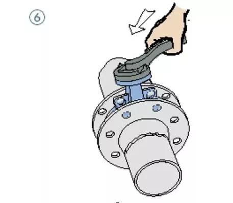 7、蝶阀法兰盘在安装时必须确保法兰面和密封橡胶对中,螺钉均匀拧紧,密封面必须贴合完整;如果出现螺钉拧紧力度不均匀会出现橡胶凸起卡住蝶板,或顶住蝶板造成阀杆处泄漏。