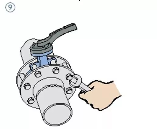 9332彩票网 1、如所示,将阀门放置于预安装的两片法兰之间,注意螺栓孔要整齐对齐。