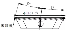 硬密封蝶阀的密封面是斜锥面,阀体密封圈(图1)与蝶板组合件密封圈(图2)的接触为面接触,其工作原理是靠驱动装置扭力直接带动蝶板组合件,使蝶板组合件密封圈与阀体密封圈充分接触后产生弹性变形而密封。硬密封蝶阀作为一种高性能阀门,具有耐腐蚀性好、密封可靠、开启力矩小等优点。硬密封电动蝶阀DN1200,其中阀体密封圈材料为1Cr18Ni9Ti,蝶板组合件密封圈材料为复合的不锈钢板与石棉板夹层组合件,阀体密封圈与蝶板组合件密封圈的加工质量直接决定蝶阀密封性能。