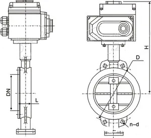 本蝶阀由电动机带动驱动执行机构,使碟板在90°范围内自由转动以达到启闭或调节介质流量的目的。