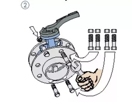 9332彩票网 1、如所示,将阀门放置于预安装的两片法兰之间,注意螺栓孔要整齐对齐。