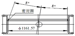硬密封蝶阀的密封面是斜锥面,阀体密封圈(图1)与蝶板组合件密封圈(图2)的接触为面接触,其工作原理是靠驱动装置扭力直接带动蝶板组合件,使蝶板组合件密封圈与阀体密封圈充分接触后产生弹性变形而密封。硬密封蝶阀作为一种高性能阀门,具有耐腐蚀性好、密封可靠、开启力矩小等优点。硬密封电动蝶阀DN1200,其中阀体密封圈材料为1Cr18Ni9Ti,蝶板组合件密封圈材料为复合的不锈钢板与石棉板夹层组合件,阀体密封圈与蝶板组合件密封圈的加工质量直接决定蝶阀密封性能。