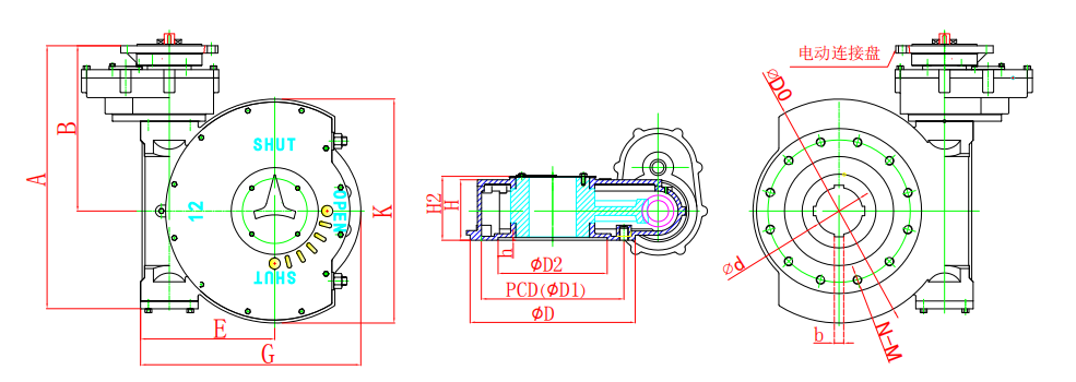 该系列是直齿轮箱与蜗轮箱对接成为蜗轮减速增压机构,配上电装组合成为三级传动,实现了智能自动化,提高了工作,机械总效率,使用小电装开大阀门,节省了使用成本。