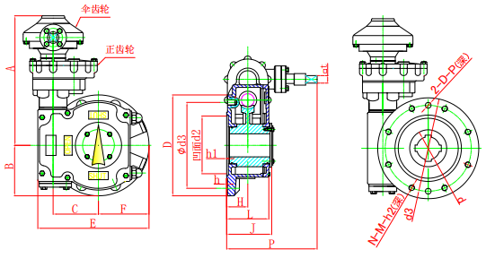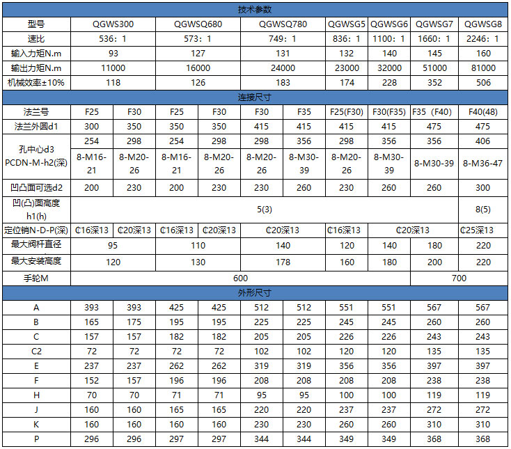 输入小力矩,开动大阀门,使操作人员省力,每种型号提供多个传动比,能更好的匹配不同规格的阀门。